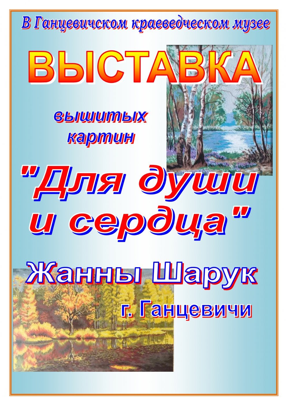 3 октября в Ганцевичском районном краеведческом музее начала работу выставка вышитых картин «Для души и сердца». Автор представленных работ Жанна Шарук, предприниматель из города Ганцевичи.